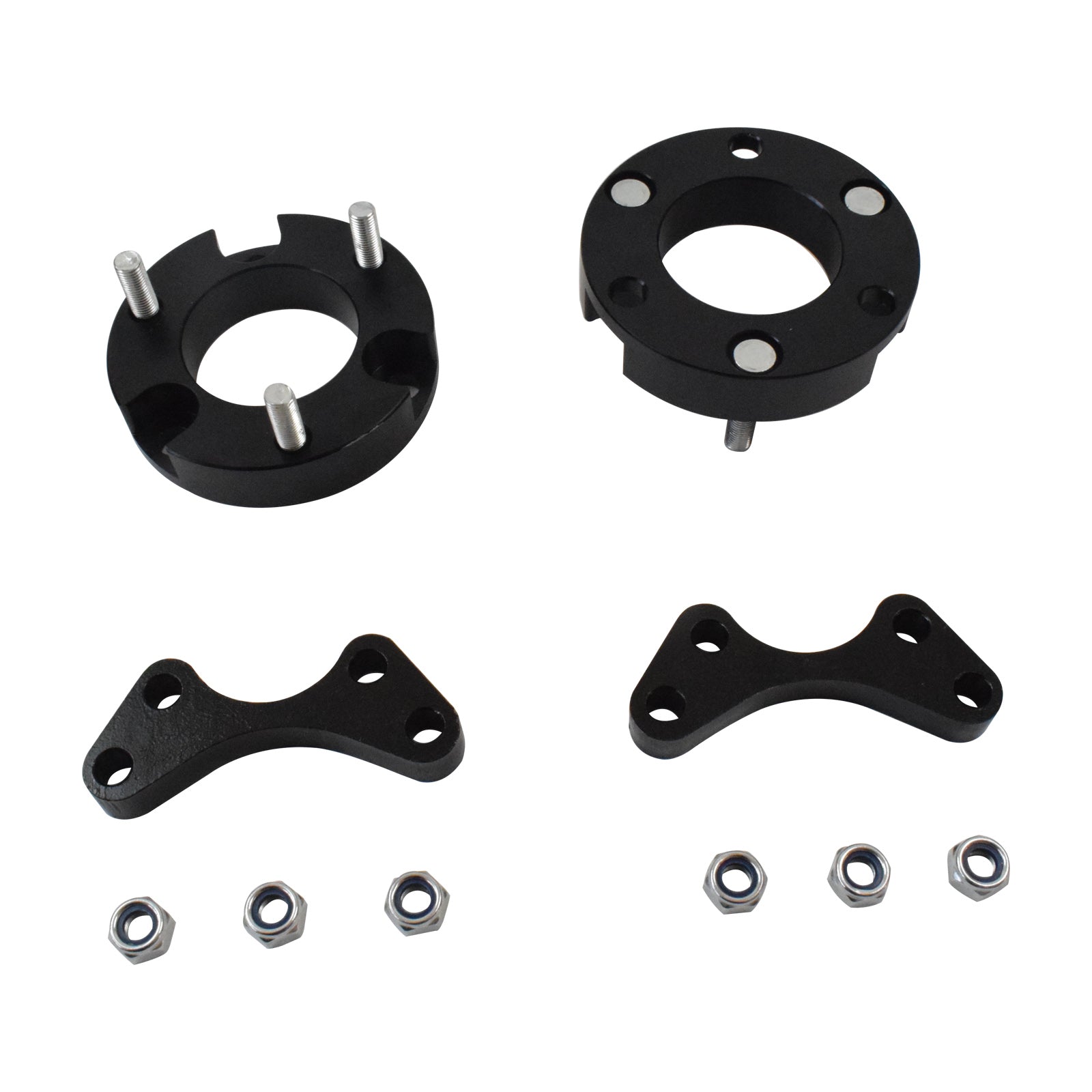 You can use these with your standard suspension or with aftermarket suspension to help level out the typical nose down appearance that the 4x4 Vehicles have