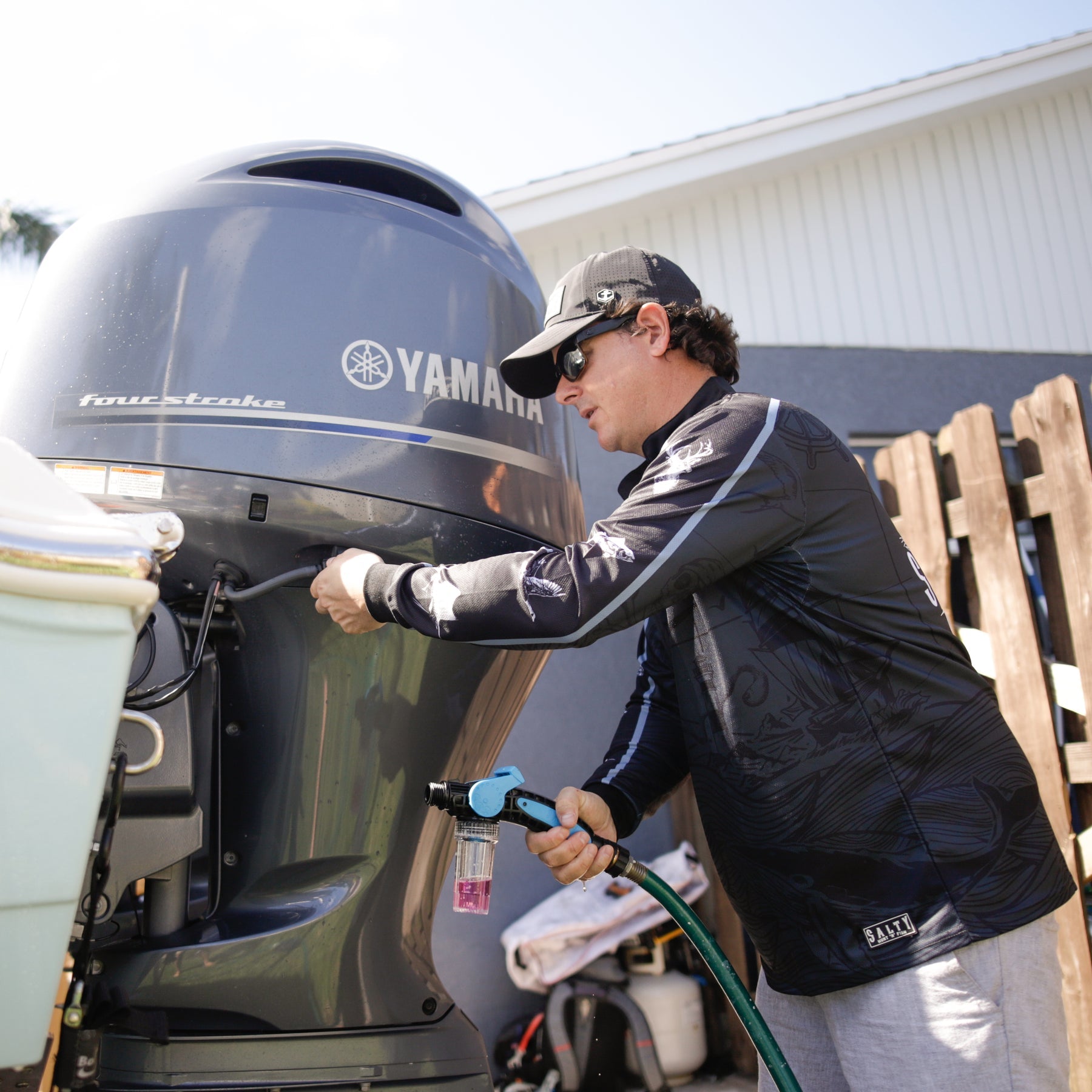 Salty Captain’s Engine Flush removes salt and prevents corrosion inside of your boat or PWC’s engine. Quick and easy to use, just fill the canister with Engine Flush, attach to flush port, and flush away!
