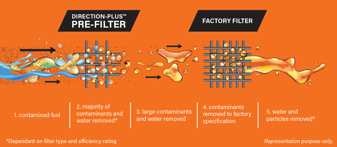 For the ultimate front line defence against water and particle contamination, investing in a DirectionPlus™ Fuel Manager Pre-Filter Kit will protect your investment 24 hours a day, 365 days a year.