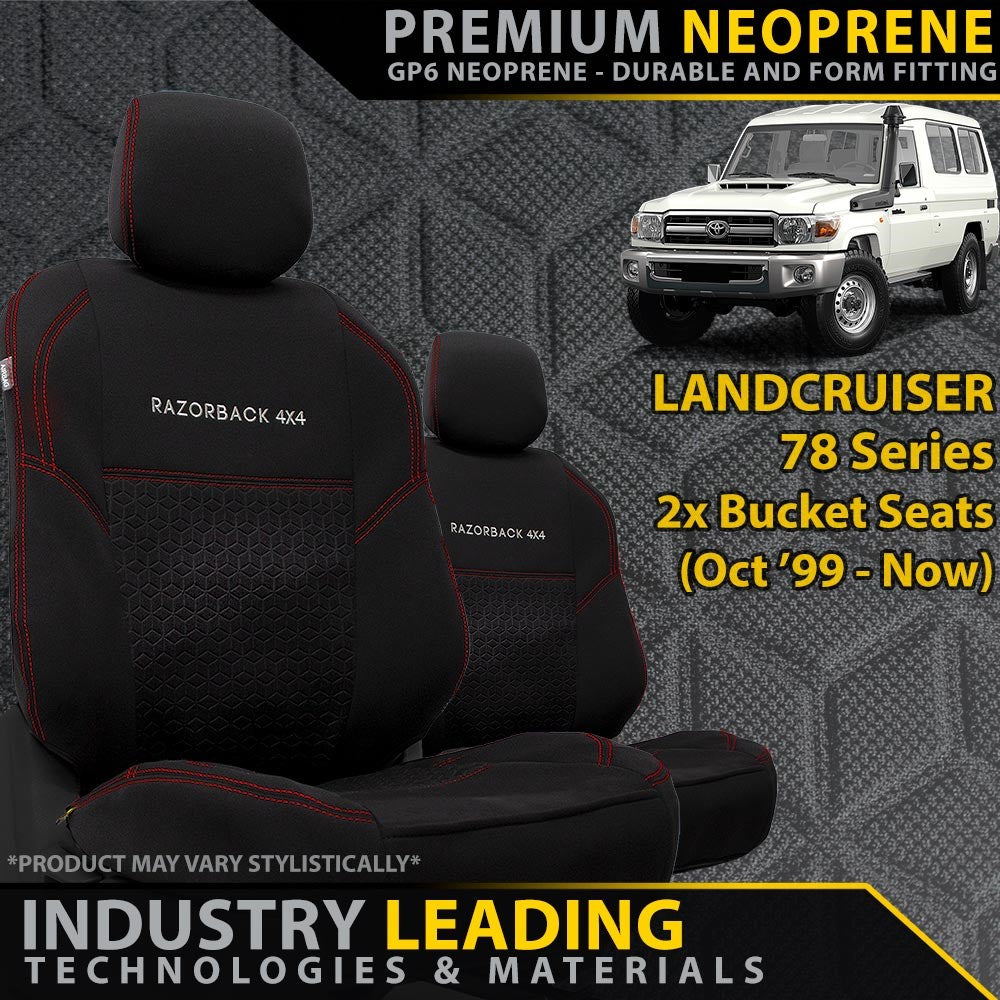 Razorback 4x4 GP6 Premium Neoprene 2x Front Seat Covers suitable for a Toyota Landcruiser 78 Series