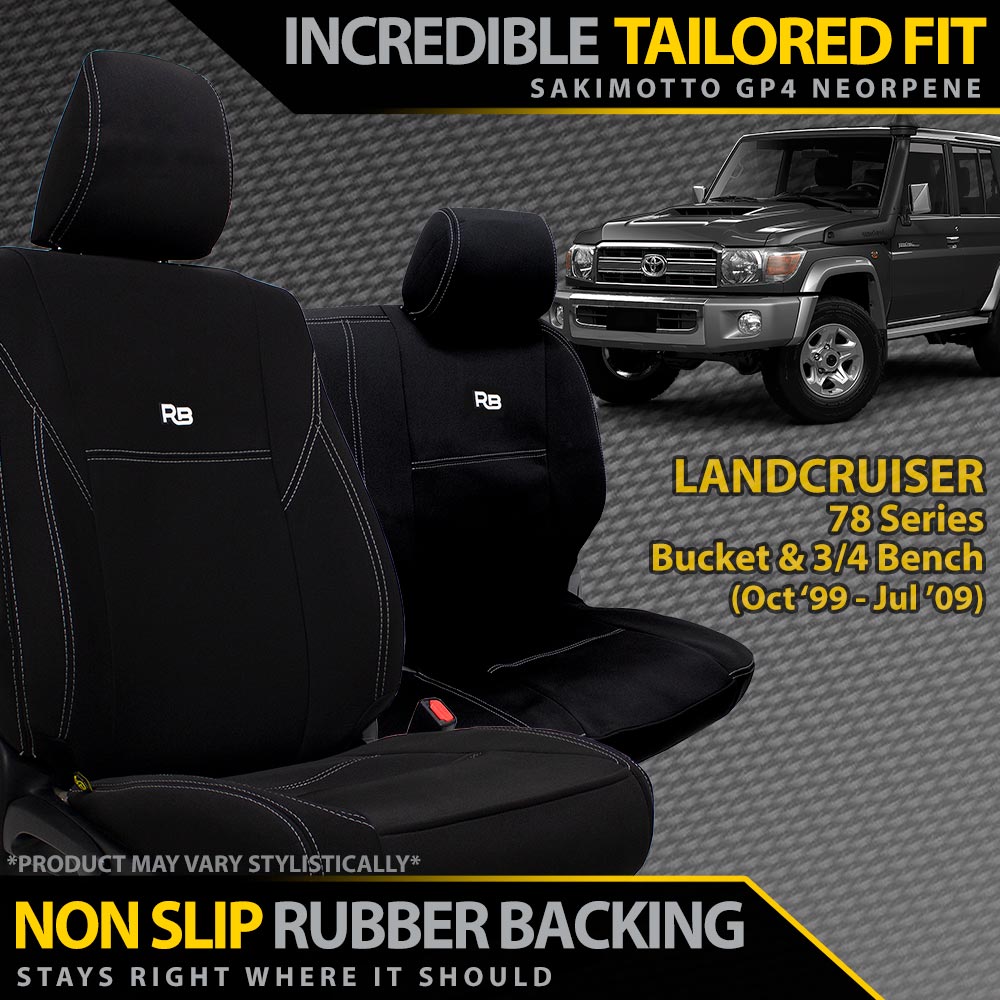 Razorback 4x4 GP4 Standard Neoprene Bucket and 3/4 Bench Front Seat Covers suitable for a Toyota Landcruiser 78 Series (In Stock)