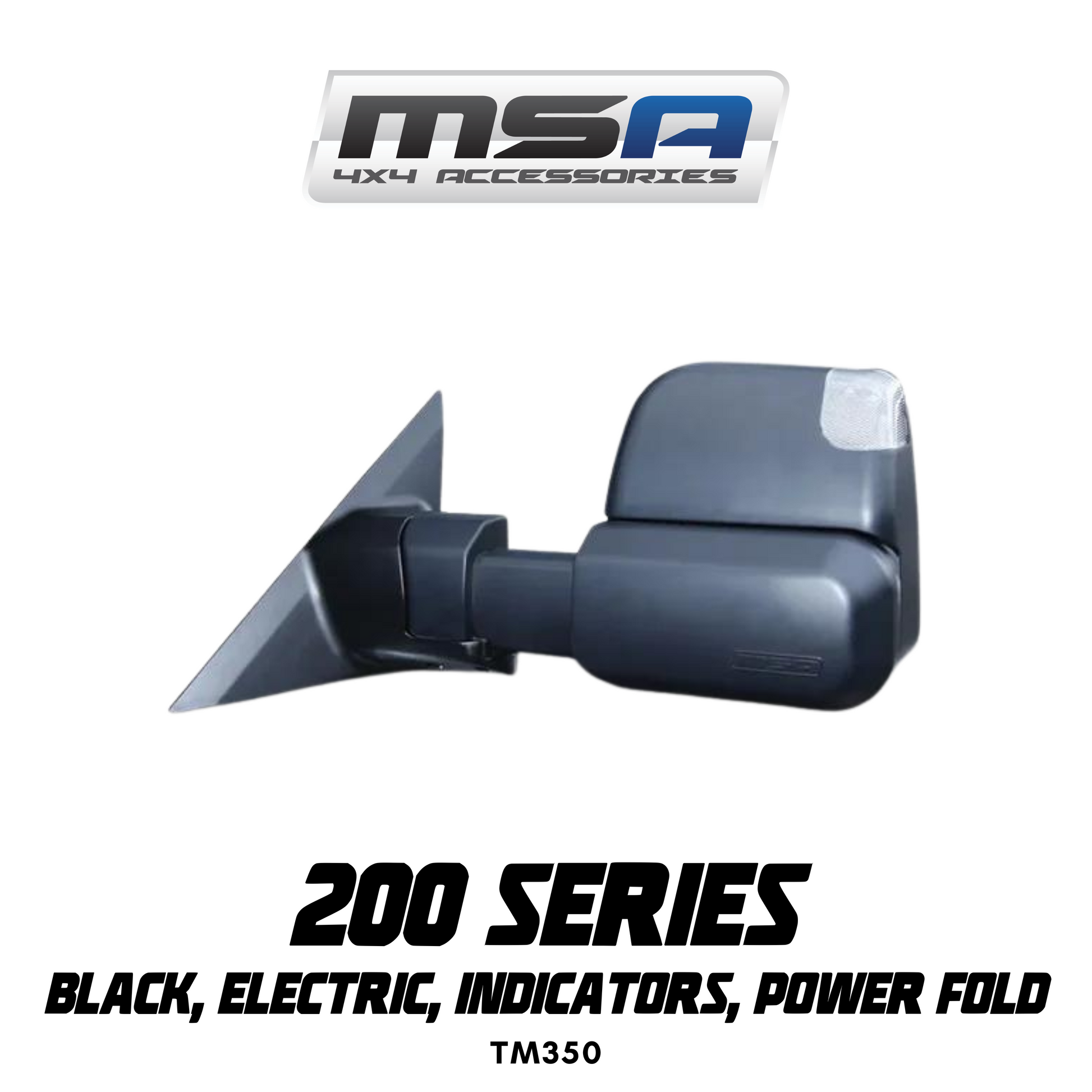 MSA 4x4 Power Fold™ Towing Mirrors - suitable for Landcruiser 200 Series 2007-2021 (Black, Electric, Indicators, Power Fold) - TM350