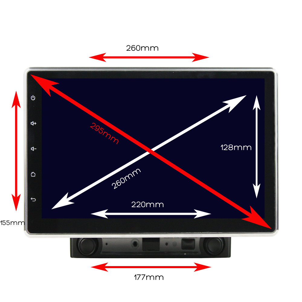 - Double din unit with a 10.1 inch floating screen on an adjustable bracket