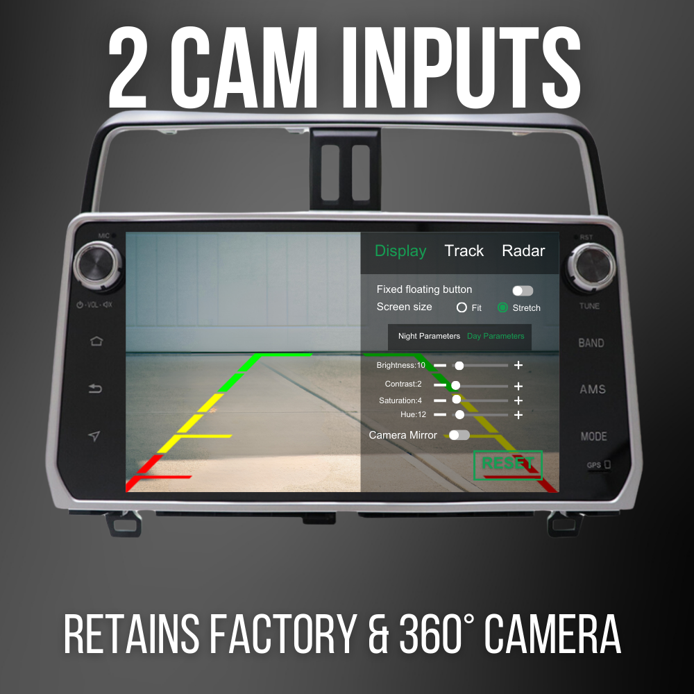 The Prado18Maxx allows you to retain your factory Reverse and 360° camera (if applicable). You can also add a second camera for your caravan or trailer, ensuring comprehensive visibility and safety.