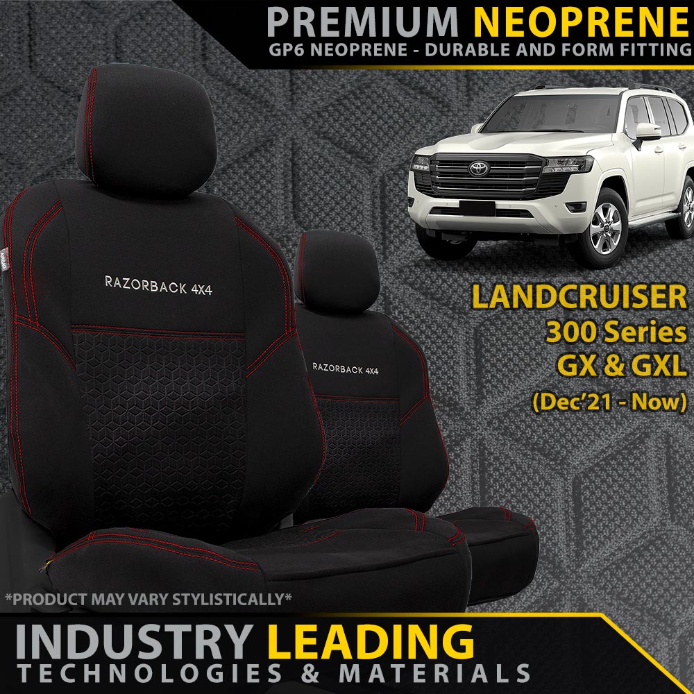 Razorback 4x4 GP6 Premium Neoprene 2x Front Seat Covers suitable for a Toyota Landcruiser 300 Series GX & GXL
